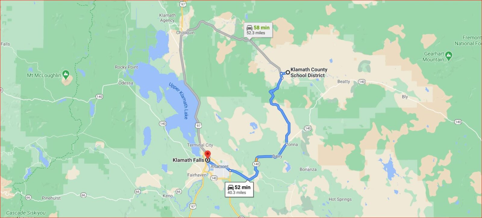 Klamath Falls, OR: 53 min (40 miles)